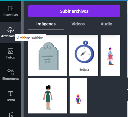 A. Para importar los personajes que hicieron y descargaron desde el Creador de historias, deben ir a la columna de la izquierda, hacer clic en Archivos Subidos - > Subir Archivos. Allí podrán seleccionar las imágenes de sus personajes, fondos y globos de diálogo o pensamiento.